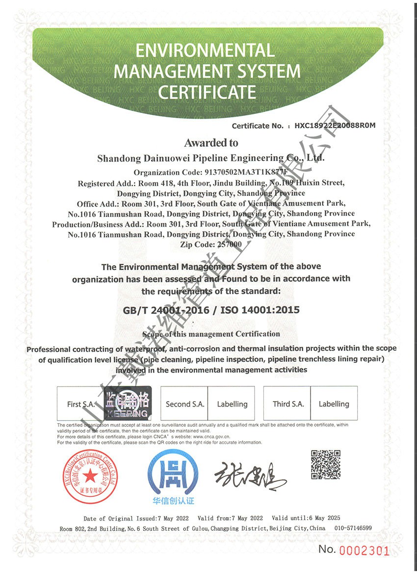 管道非開(kāi)挖修復(fù)工程服務(wù)企業(yè)資質(zhì)證書(shū)