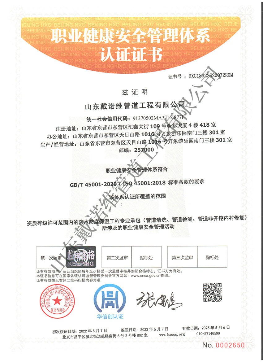 管道非開挖修復工程服務企業(yè)資質(zhì)證書