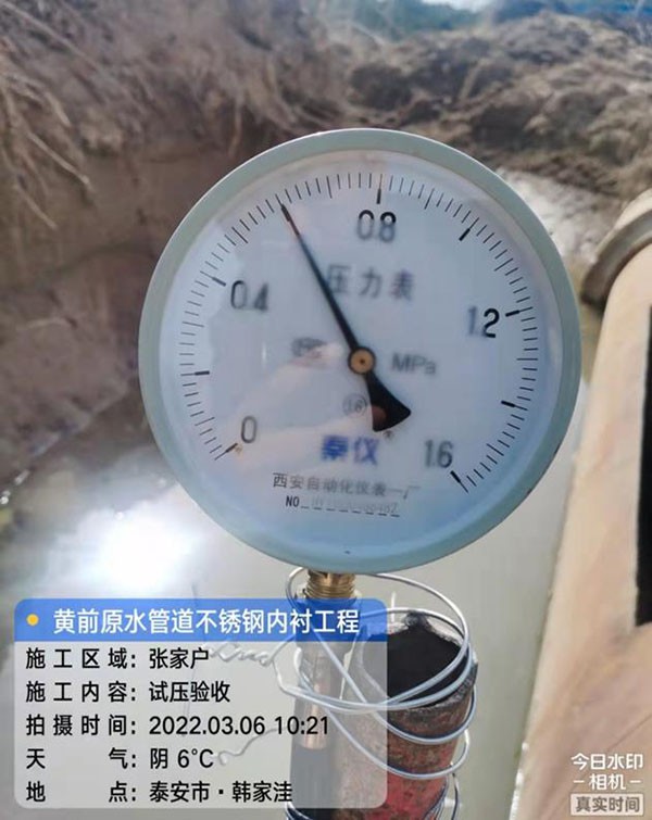 2.工程名稱:黃前原水管線(一期)改造工程春陽(yáng)溝村段不銹鋼內(nèi)襯工程